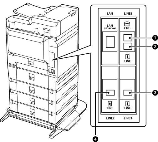 將印表機連接至電話線。連接連接埠的方法與 LINE1 連接埠的相同。若需詳情,請參考下面的相關資訊。