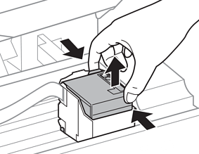 轻捏墨盒上的卡子并将墨盒垂直向上拉。如果无法取出墨盒,请用力拉。