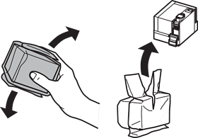 更换墨盒时,轻轻摇晃新的墨盒四次或五次,然后将其从包装中取出。
