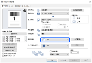 3. プリンタードライバーの画面を表示して、[基本設定]タブの[両面印刷]から[オフ]を選択します。