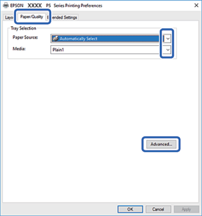 Принтердің драйвер терезесіне кіру үшін Параметрлер немесе Сипаттар опциясын таңдаңыз.