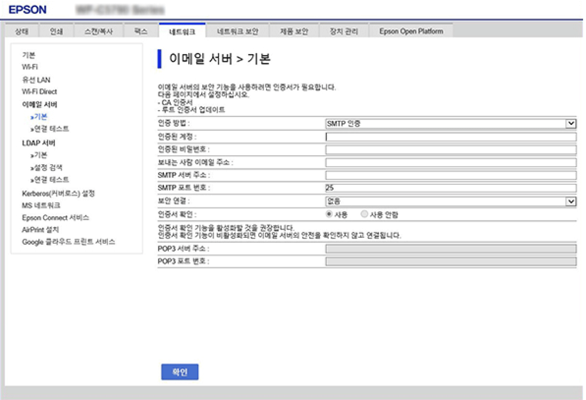 이메일 전송 시 SMTP 서버 (송신 메일 서버)에서 인증합니다. 메일 서버가 SMTP 인증을 지원해야 합니다. |
