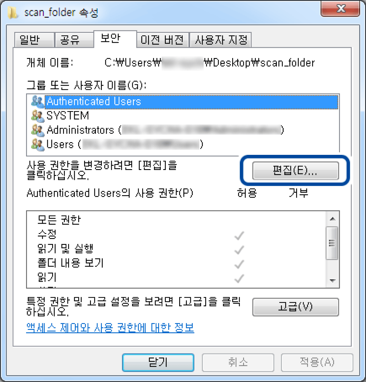 액세스가 허용된 사용자 또는 그룹의 컴퓨터에서 파일을 읽고 쓸 수 있는지 확인합니다.