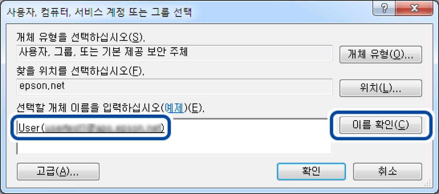 액세스를 허용하려는 그룹 또는 사용자 이름을 입력한 후 이름 확인을 클릭합니다.