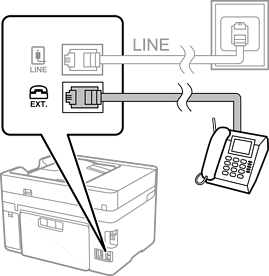 Priključite telefon na ulaz EXT. koji se nalazi na pisaču kada koristite samo jednu telefonsku liniju na koju su priključeni telefon i pisač. Telefon i pisač možda neće ispravno raditi ako razdijelite telefonsku liniju kako biste ih zasebno priključili.