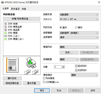 有關印表機驅動程式的詳細資訊,請參閱功能表選項。