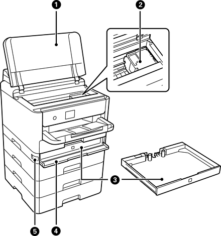 打開以清除夾紙。此護蓋通常應保持關閉。