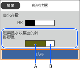 您還可從印表機驅動程式的狀態監視器上查看大約墨水存量,以及廢棄墨水收集盒的約略使用壽命。