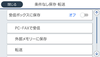 [受信設定]-[保存・転送設定]-[条件なし保存・転送]の順に選択します。