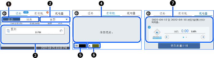 按 按钮可显示状态菜单。您可检查打印机或任务的状态。