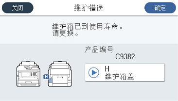 显示提示您更换维护箱的信息时,请参考操作面板上显示的动画。需要更换维护箱并不表示本产品已达到其使用寿命而停止运行。此耗材可由用户维护。