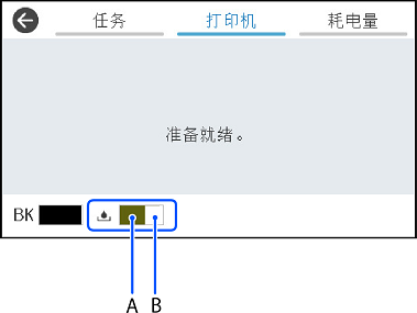 您可以通过本产品的操作面板检查大致墨量及维护箱的大致使用寿命。选择主屏幕上的