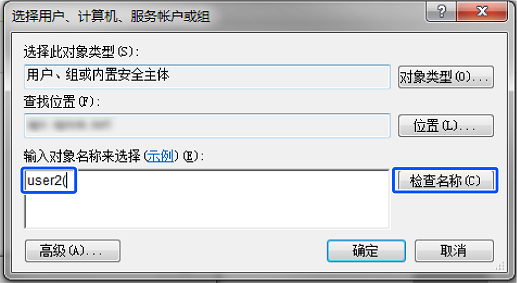 如果不知道群组或用户的全名,可输入一部分名称,然后单击检查名称。这时会列出与这部分名称匹配的组或用户名,然后便可从列表中选择全名。
