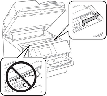 Deschideți scanerul cu capacul pentru documente închis. Fixați capul de imprimare de carcasă cu bandă adezivă.