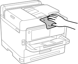 Dacă există murdărie sau praf la nivelul componentelor sau carcasei, opriți imprimanta și curățați-le cu o lavetă moale, curată, care a fost umezită cu apă. Dacă nu puteți îndepărta murdăria, încercați să adăugați o cantitate mică de detergent delicat pe laveta moale.