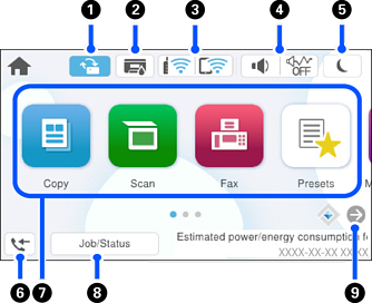 Selectați pictograma pentru a intra în modul inactiv. Când imprimanta este estompată, imprimanta nu poate intra în modul inactiv. |