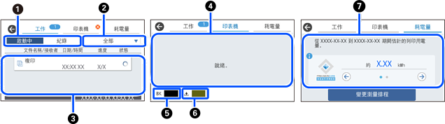 鍵以顯示 狀態 功能表。您可以檢查印表機或工作的狀態。