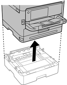 將最底處的選購進紙匣單元置於要安裝印表機之處。