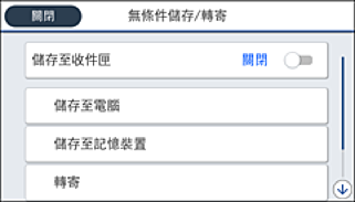 選取 [關閉] 以完成 [無條件儲存/轉寄] 設定。