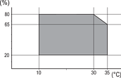 在圖中所示的溫度 (°C) 和濕度 (%) 範圍內以及無凝結的環境中使用印表機。