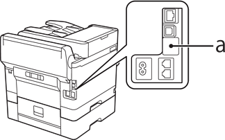 揭開印表機背面的貼紙以查看服務連接埠 (a)。