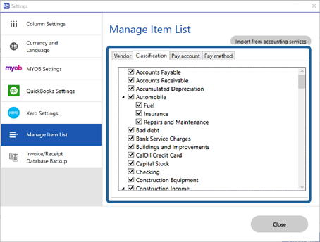 Click one of the tabs and select the imported items that you want to appear in the Edit options.