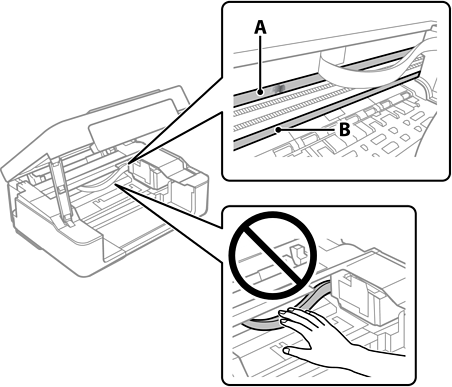 Fare attenzione a non toccare il binario (B). Diversamente, potrebbe non risultare possibile stampare. Non eliminare il grasso presente sul binario poiché serve per il suo funzionamento.