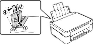 Ανοίξτε την προστασία τροφοδότη, αναπτύξτε τη στήριξη χαρτιού και, στη συνέχεια, τοποθετήστε την με κλίση προς τα πίσω.