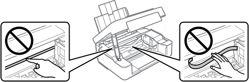 Ärge kunagi puudutage juhtpaneeli nuppe, kui teie käsi on printeri sees. Kui printer hakkab tööle, võib see põhjustada vigastusi. Hoiduge puudutamast väljaulatuvaid osi, et vältida vigastusi.