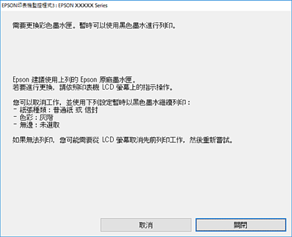 顯示下列視窗時,請取消列印。然後,再次列印。
