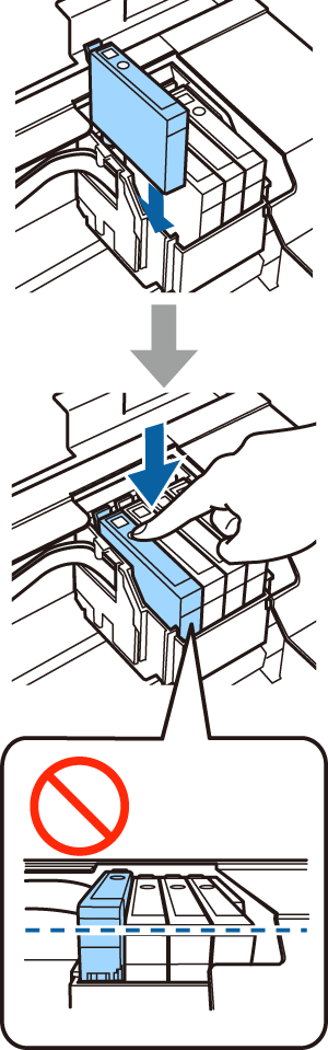 4 Insérez la cartouche d’encre et appuyez fermement dessus. Répétez cette étape pour insérer toutes les cartouches d’encre.