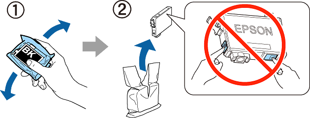 2 Schud alleen de ZWARTE cartridge vier of vijf keer voorzichtig. Schud de andere cartridges niet. Haal alle cartridges uit de verpakking.