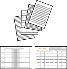 È possibile stampare con facilità carta a righe e calendari utilizzando il menu Cancelleria pers..