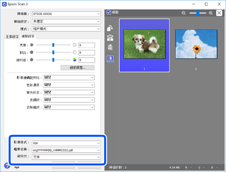 在 Epson Scan 2 中的 [相片模式] 下,您可以用適合於照片或圖片的各種圖形調整功能來掃描原稿。
