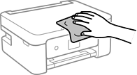 Hvis komponenterne og kabinettet er snavset eller støvet, skal du slukke for printeren og rengøre dem med en blød, ren klud, der er fugtet med vand. Hvis du ikke kan fjerne snavs, kan du prøve at tilføje en lille mængde mildt rengøringsmiddel til den fugtige klud.
