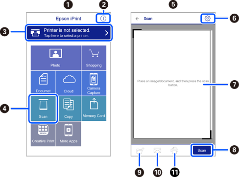 スマートデバイスでEpson iPrintを起動して、ホーム画面で使いたい項目を選択します。