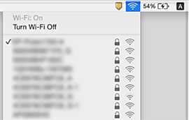 コンピューター画面上部にあるWi-Fiアイコンをクリックします。SSIDのリストが表示されるので、チェックマークが付いた(接続済み)SSIDを確認します。