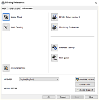 ノズルチェックやヘッドクリーニングなどのメンテナンス機能を実行したり、[EPSON プリンターウィンドウ!3]を起動してプリンターの状態やエラーを確認したりできます。