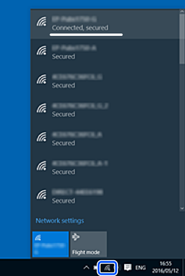 na traci zadataka na radnoj površini. Provjerite naziv spojenog SSID-a s prikazanog popisa.