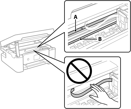 Pazite da ne dodirnete vodilicu (B). U suprotnom može doći do poteškoća s ispisivanjem. Nemojte brisati masnoću na vodilici jer je ona potrebna za pravilan rad uređaja.