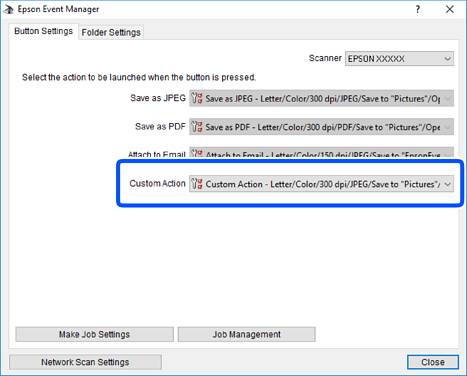 Možete odabrati postavke skeniranja za Slijedite prilag. postavlj. in Epson Event Manager.