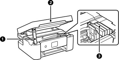 Skenira postavljene izvornike. Otvorite prilikom zamjene spremnika s tintom ili kada želite ukloniti zaglavljeni papir unutar pisača. |