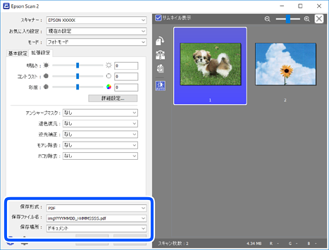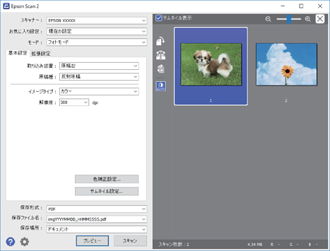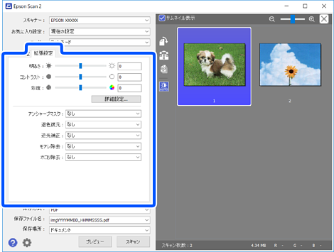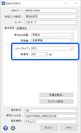 Epson Scan 2の[フォトモード]では、写真や絵に適した画質調整機能を使って原稿をスキャンできます。