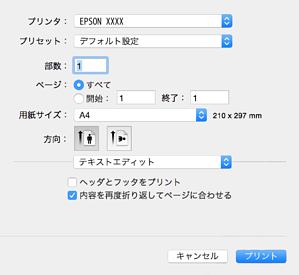 ここではテキストエディットを例に説明しています。アプリケーションソフトによって操作や画面が異なります。詳しくはアプリケーションソフトのヘルプをご覧ください。