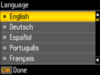 1 Sélectionnez la langue souhaitée à l’aide de la touche ou , puis appuyez sur la touche OK.