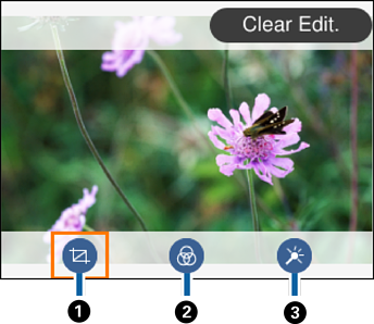 Justerer beskæringsområdet. Du kan flytte rammen til det område, du vil beskære med knapperne |