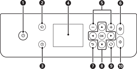 מציג תפריטים והודעות. בחר תפריט או בצע הגדרות באמצעות לחצני לוח הבקרה. |