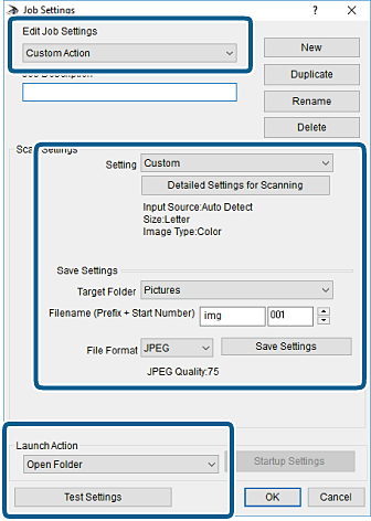 Lakukan pengaturan pemindaian di layar Pengaturan Tugas.