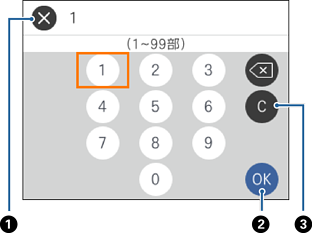 コピー部数の設定などでの数字の入力は、キーパッド画面で行います。