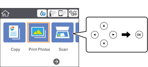 Selecione Imprimir Fotografias no painel de controlo.